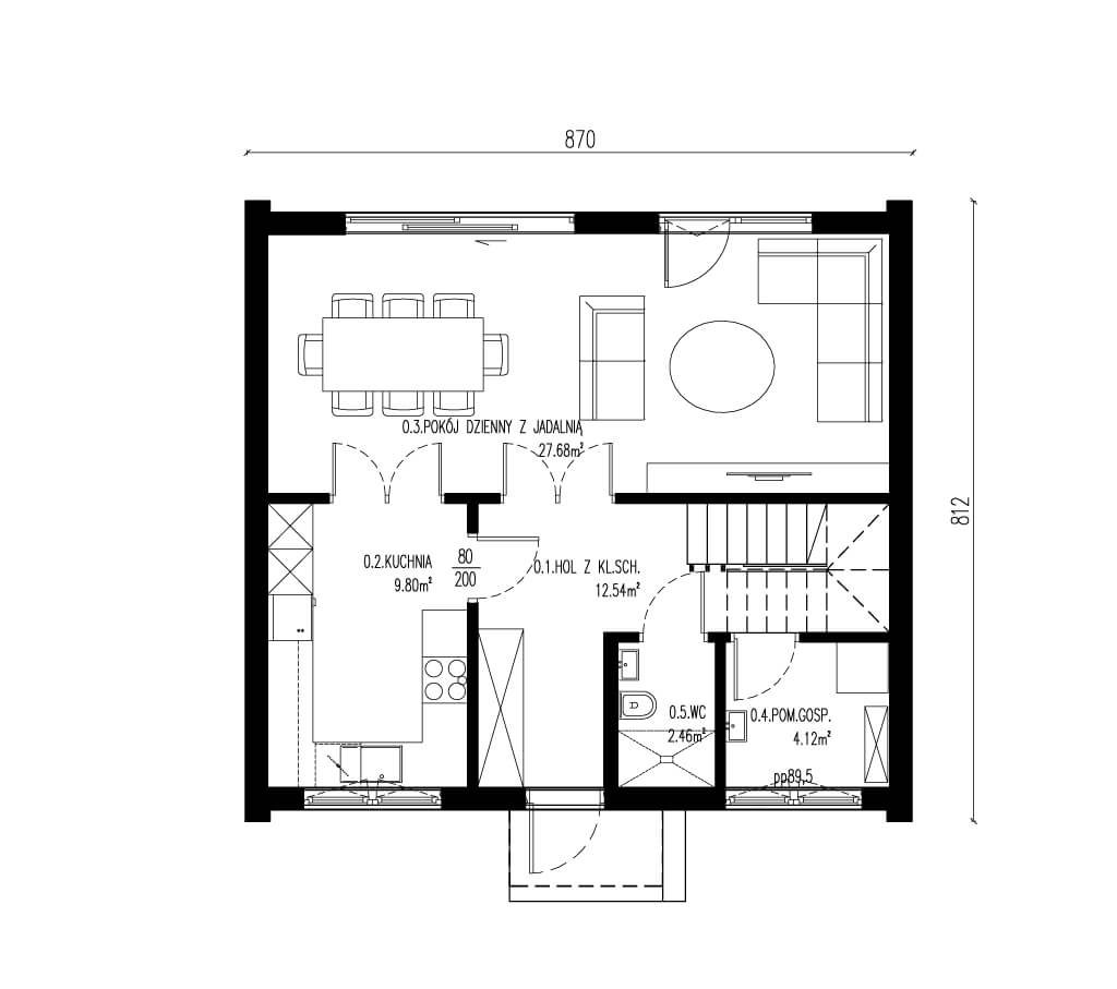 Powierzchnia użytkowa parteru: 56,60 m2