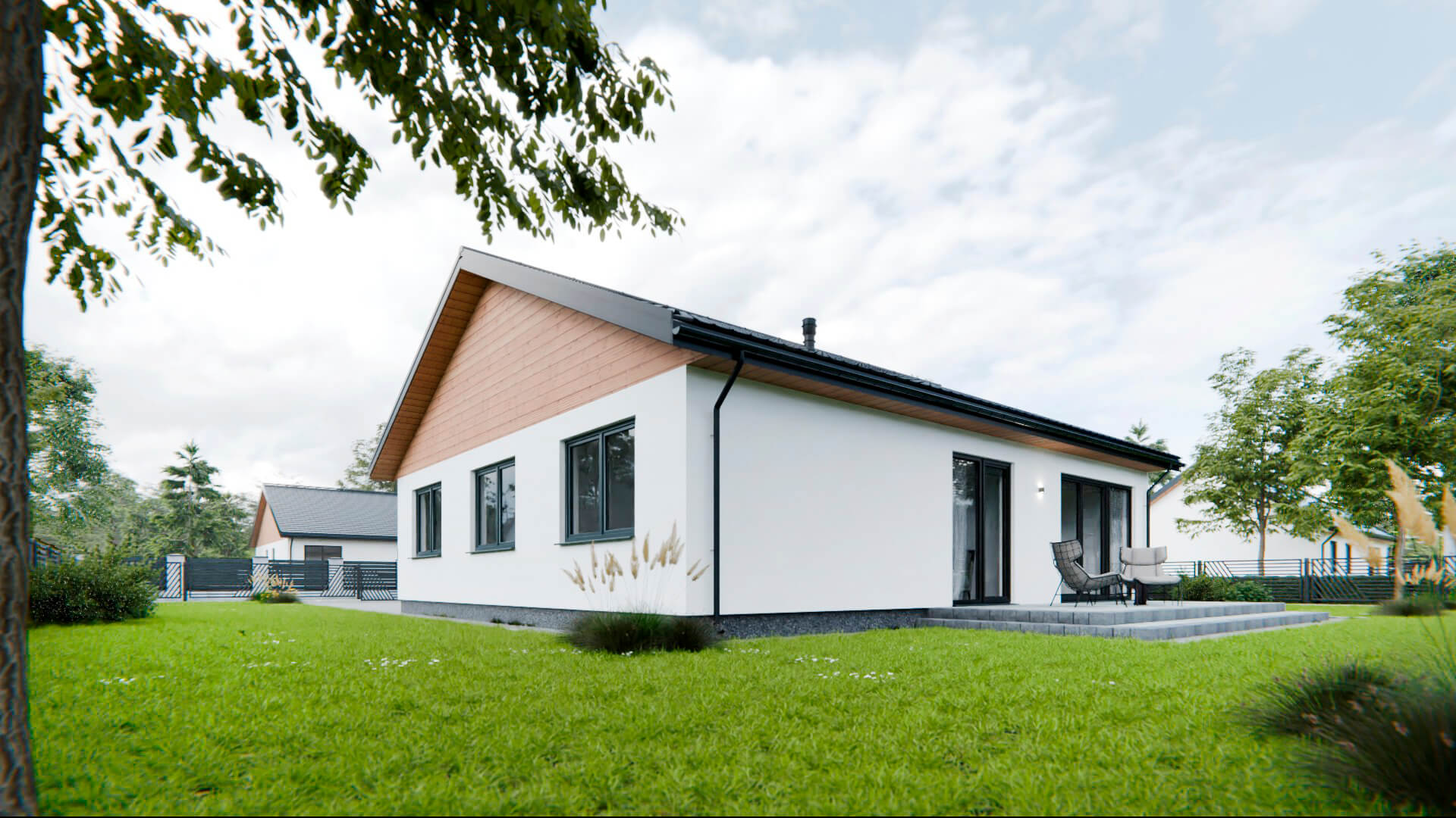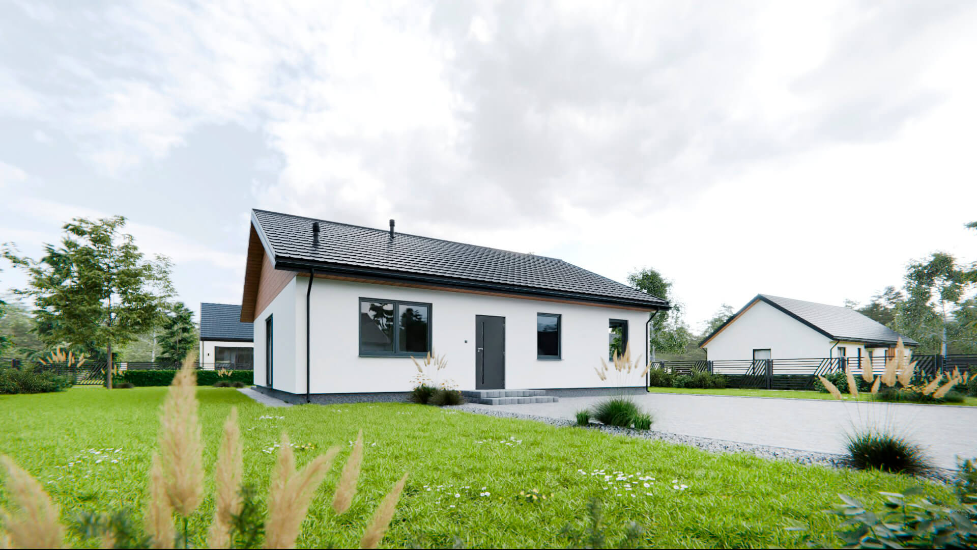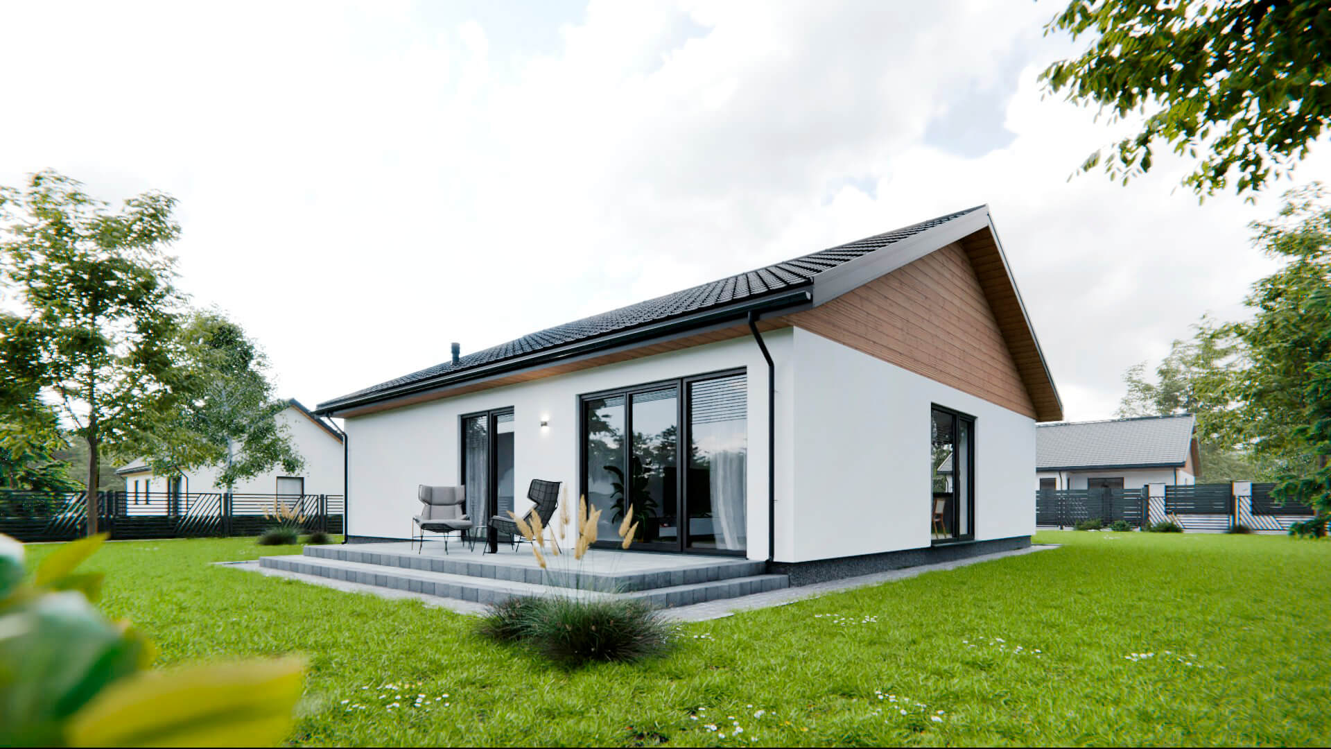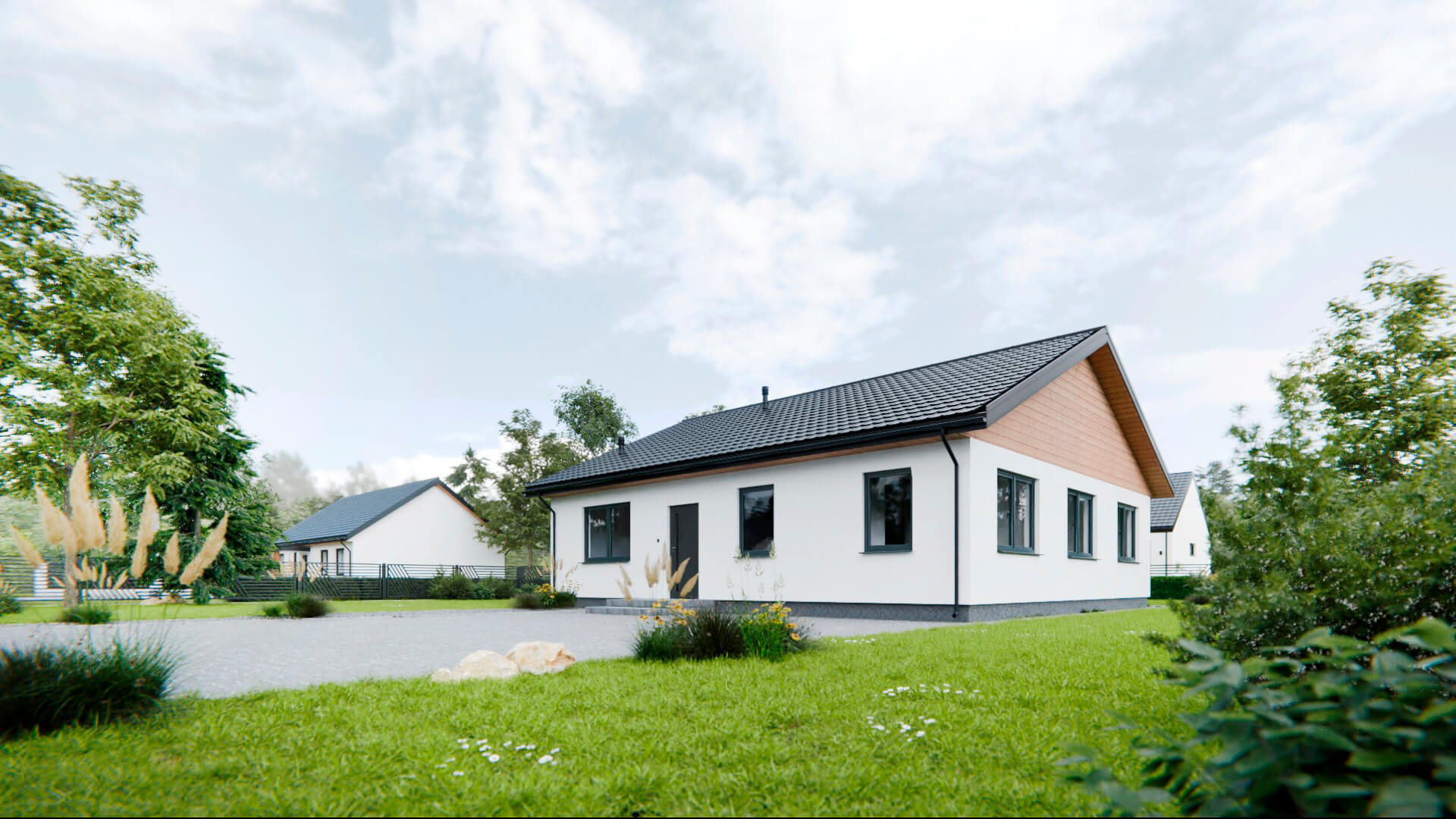 Model L to projekt, który łączy w sobie prostotę formy, ergonomiczne rozwiązania oraz elegancję elewacji z drewnianymi akcentami. To idealna propozycja dla osób ceniących przejrzystość układu, efektywne wykorzystanie przestrzeni i przytulny klimat w nowoczesnym wydaniu.